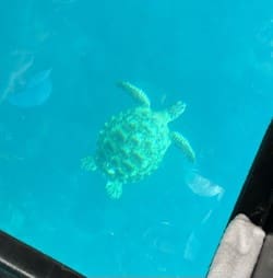Kim went on a glass bottom boat ride and to a textile manufacturer.
