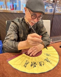Every cabin got a fan that this man wrote on. We have met a Chinese woman on the world cruise, and she translated this into Peace.