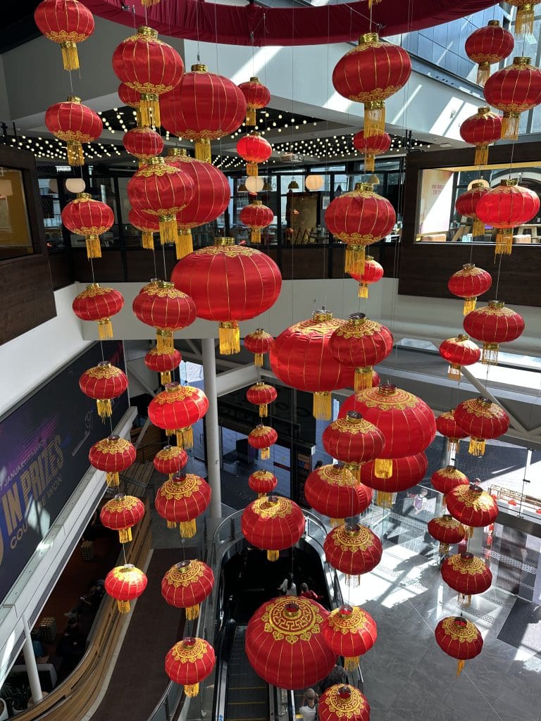 Kim also remembered that the Sky Tower, the building with the needle like point on top just to the right of center in the picture below, had a Chineese New Year display 2 years ago. So, she went there again and they had a new display.